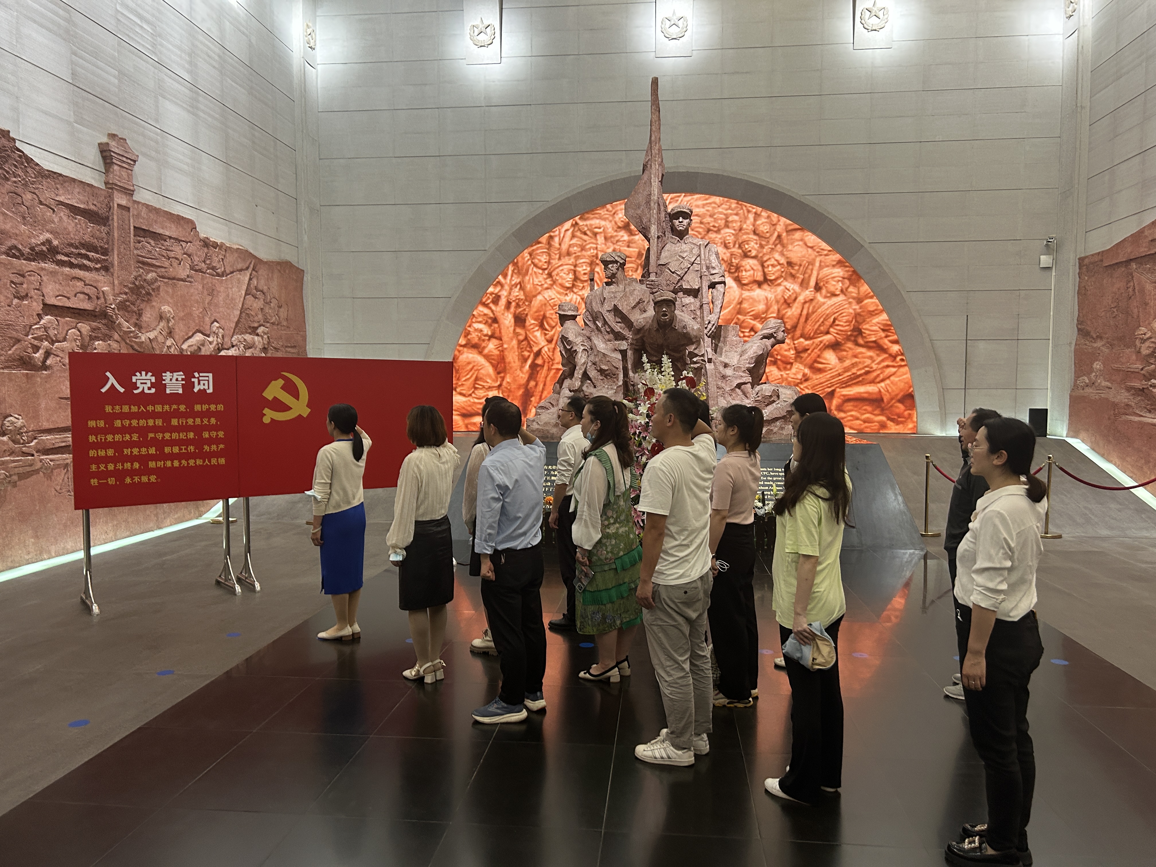 在江西革命烈士纪念堂一楼,在鲜红的党旗面前,全体党员举起右手、握紧拳头,在领誓人的带领下,教师党员重温了入党誓词。大家纷纷表示,通过重温入党誓词,再一次体会到作为一名共产党员的责任感和使命感。
