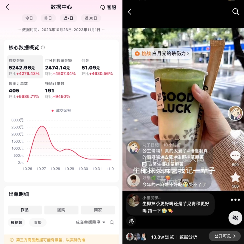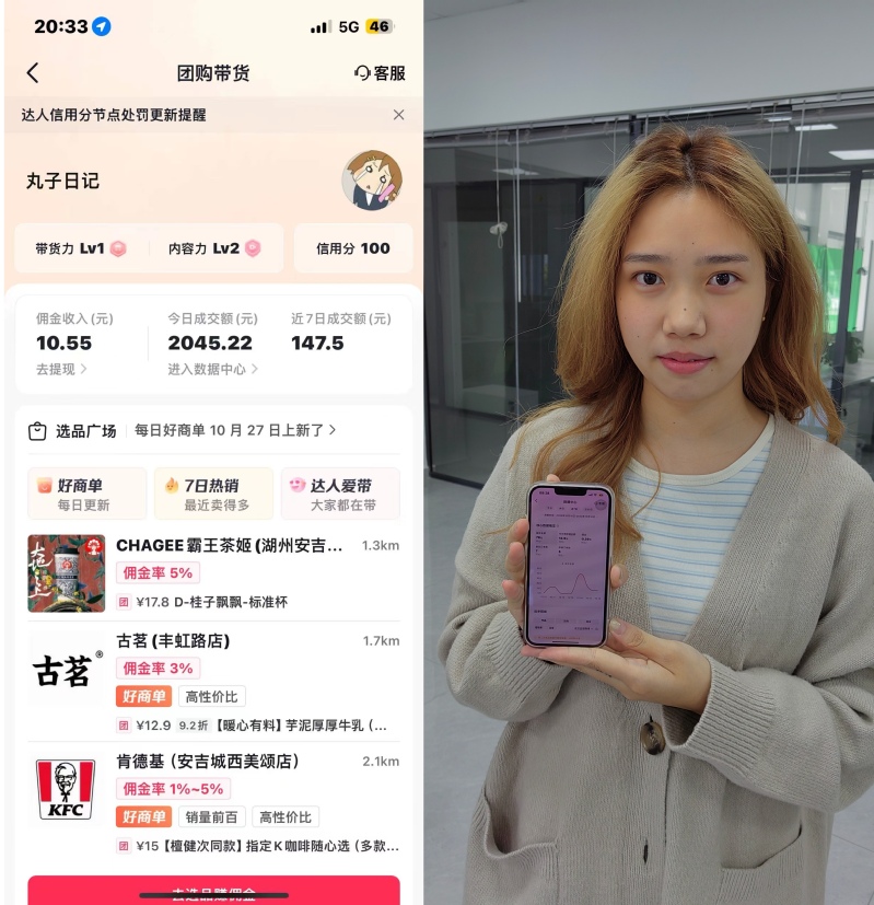 根据学院教学安排,学生在校外实践教学期间,依托真实项目真实岗位开展实践学习与训练,可自由选择企业实践项目组进行实践学习。面对企业提供的诸多项目,如直播电商、本地生活、网店运营等,她起初感到有些迷茫,不知道选择哪一个。偶然的机会,她选择了本地生活这一项目,项目中每个人分工不同,基于平时的兴趣爱好,她选择了抖音达人。在项目具体操作中,她发现有很多方面值得去认真学习和探索。她努力去拍好每个商品的视频,做好每个商品视频的剪辑……经过一段时间的坚持和努力,很快有了喜人的成绩,她有了第一笔成交额147.5元。“当时我特别开心,没想到会这么快有成交额,虽然金额不高,但自己的努力有了回报。”宁婉婷回忆说。