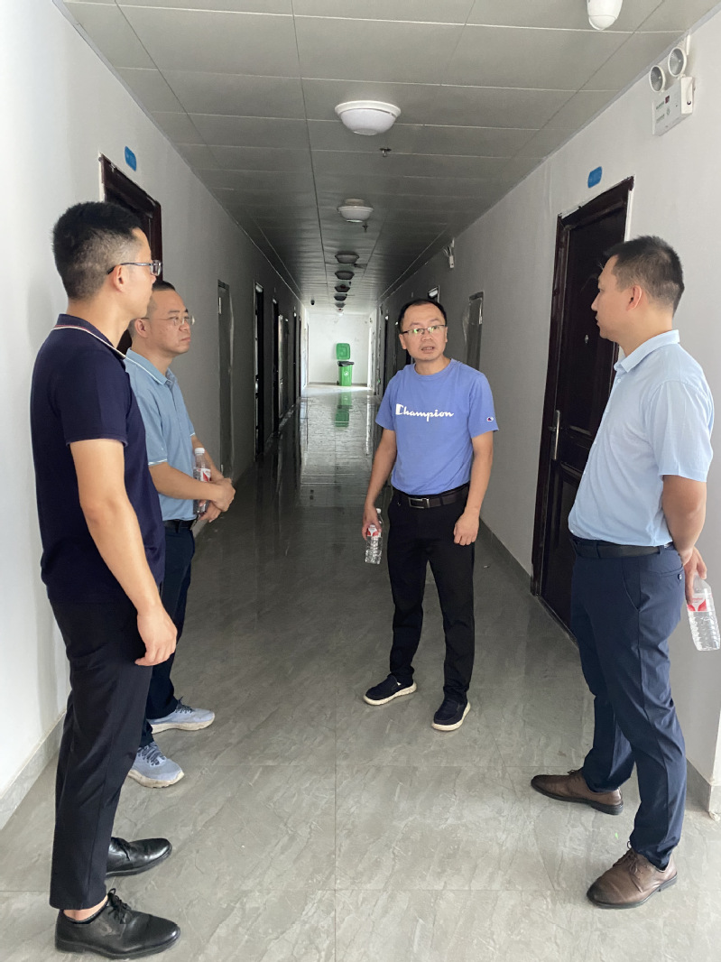 9月1日上午,陈维佳、郑金胜一行前往新建区云创港项目基地,在基地马忠岩老师的带领下,陈维佳一行先后参观了教学楼、食堂等场所的开学准备情况,在详细了解学生教室、食堂的布局及功能设置后,对教学楼的环境整治、食堂的环境卫生、用餐时间等提出要求,保障学生在基地学习期间的安全与健康。随后,前往学生寝室走访看望学生。走访过程中,院领导与同学们亲切交流,询问同学们对基地的适应情况,现场办公协调学生反馈的问题,并鼓励同学们要充分利用好实践教学的机会,践行“学中做,做中学”,勤学多问,融会贯通,把自己所学的理论知识与项目实践有机结合。