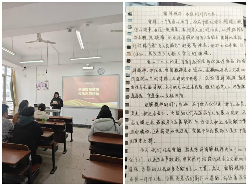 为大力弘扬“奉献、友爱、互助、进步”的志愿服务精神,让“雷锋精神”生生不息,数字经济学院团总支组织各班级召开“讲述雷锋故事,传承志愿精神”主题团日活动,通过每位团员在班级结合身边实事,讲述雷锋故事,体会雷锋精神的永恒价值,宣传雷锋精神的时代内涵。