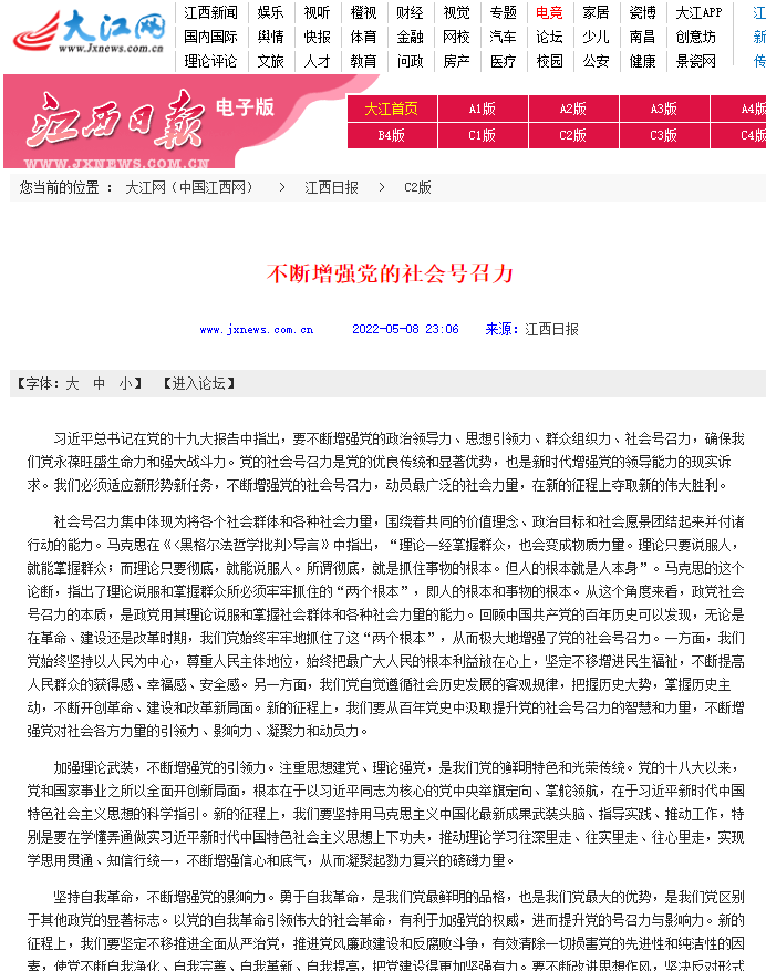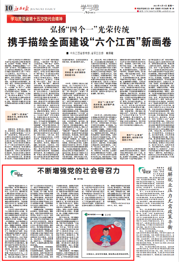 黄平槐在《江西日报》发表文章 《不断增强党的社会号召力》