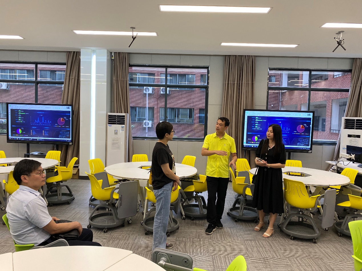 6月10日,我中心综合科科长郭麟、科员刘芸赴江西师范大学调研智慧教室建设情况。本次调研首先由江西师范大学现代教育技术中心主任姜辉带领大家参观该校的智慧教室管理中心;然后由赵高勋老师详细介绍师大智慧教室1.0的功能和特点;最后参观了去年竣工的智慧教室2.0,赵老师详细介绍了该教室的规划情况、建设情况、功能特点等。 此次调研交流,不仅加深了对这所高校智慧教室建设状况的了解,还在充分沟通和调研的基础上加深了对信息化建设的理解,将为我校后期的智慧教室建设提供新的思路。