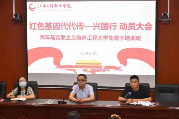 学校在西湖校区学术报告厅举行了第五期“红色基因代代传-将军县兴国行”动员大会。全体参训学员及相关工作人员参会。会上组织学习了团省委及学院大学生青马工程培训相关文件精神,就培训的目的意义、活动安排、纪律要求等进行了说明,并要求全体学员要珍惜学习机会,强化理论武装,筑牢思想根基,苦练过硬本领,勇担青春使命,充分发挥在同学中的示范带动作用,当好火车头,树立新标杆。