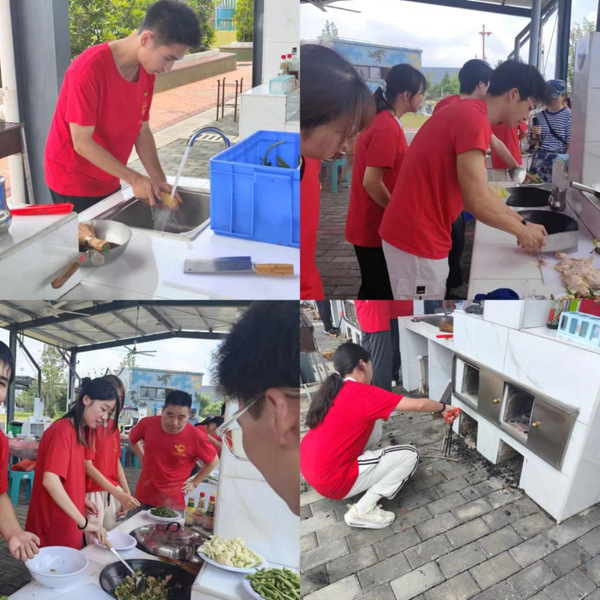 劳动实践忆苦思甜。“红米饭,南瓜汤,……”一首《红军饭之歌》将同学们的思绪拉回到那段峥嵘岁月,学员们亲手制作红军饭,从生火、洗菜开始,亲身实践切实感受到红军革命时期做饭的生活,感悟当下生活的来之不易。“这次活动对大家来说挑战比较大,但每个同学都非常认真,大家都积极互相帮助,工作效率大大提高,让我感到我们是如此团结,我们真的太棒了!”22级会信专业刘宇琪同学感慨到。