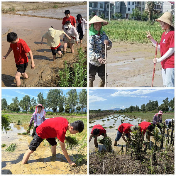 引导学生深刻理解“一粥一饭当思来之不易”精神内涵,培养学生的社会责任感和团队合作精神,实践团队的成员们来到田间地头,实地展开调研并参与实践,跟着村民学习如何插秧盘,体会到了农民种田的辛苦与粮食的来之不易。