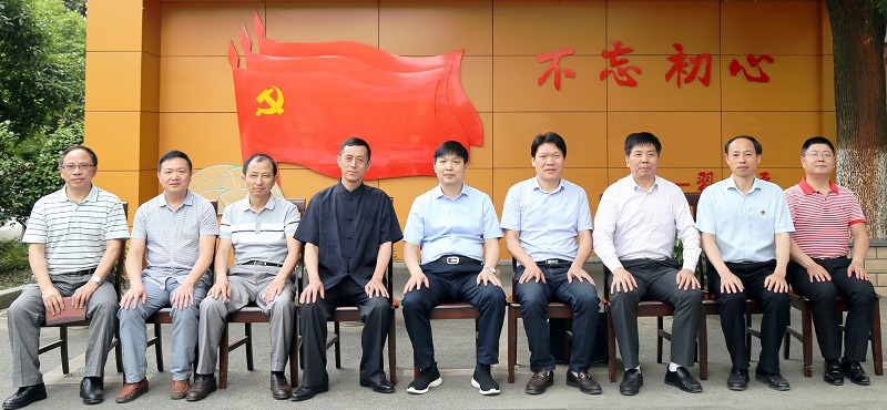 上图:李瑞峰同志一行与中心党委班子在党建文化墙前合影