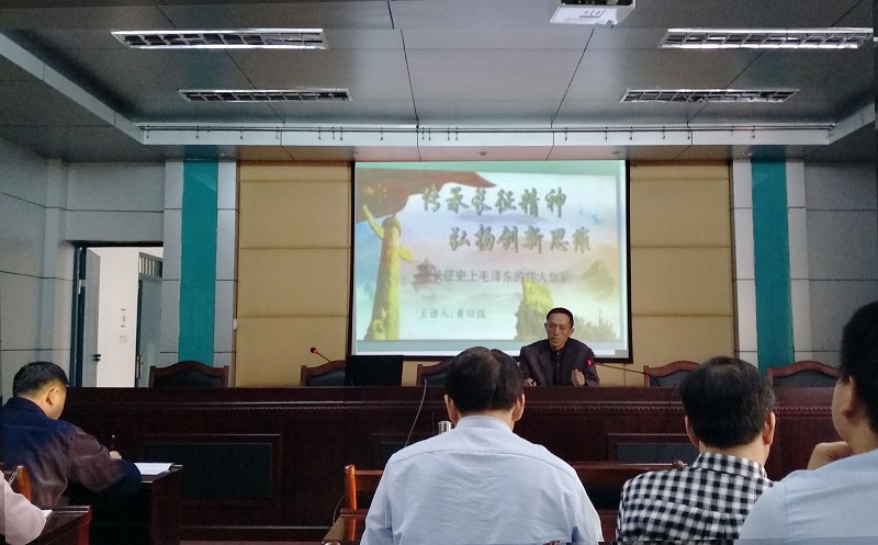 2019510日下午,新余市成人教育中心按照“两学一做”教育活动要求开展“不忘初心,牢记使命”主题教育。黄绍强同志围绕《传承长征精神弘扬创新思维——谈长征史上毛泽东的伟大创新》为主题作党课专题辅导。