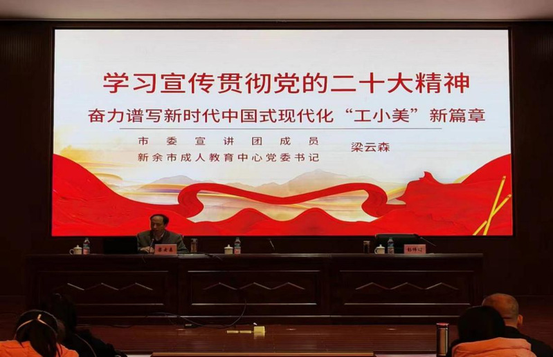 12月14日上午,全市社区教育工作者培训在新余市民学习中心报告厅开班。开班式结束后,党委书记梁云森同志在会上宣讲党的二十大精神。