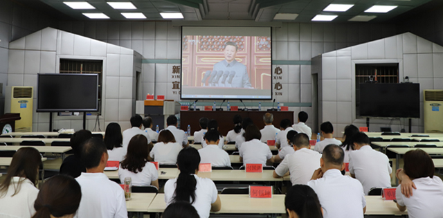 全校教职员工怀着无比激动的心情观看了大会全程直播盛况,特别是认真收听了中共中央总书记、国家主席、中央军委主席习近平发表的重要讲话,席间不时自发响起热烈的掌声。