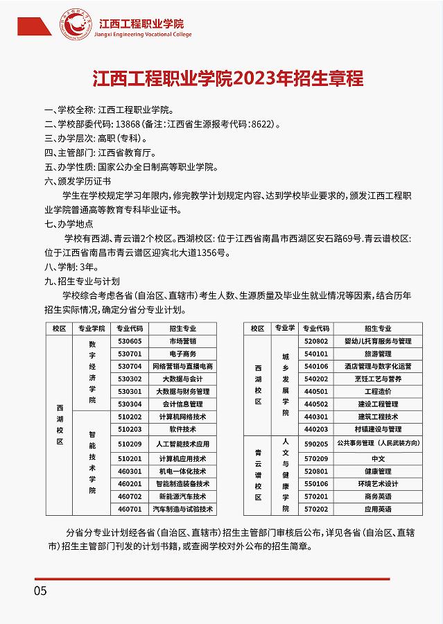 江西工程职业学院2023年招生简章