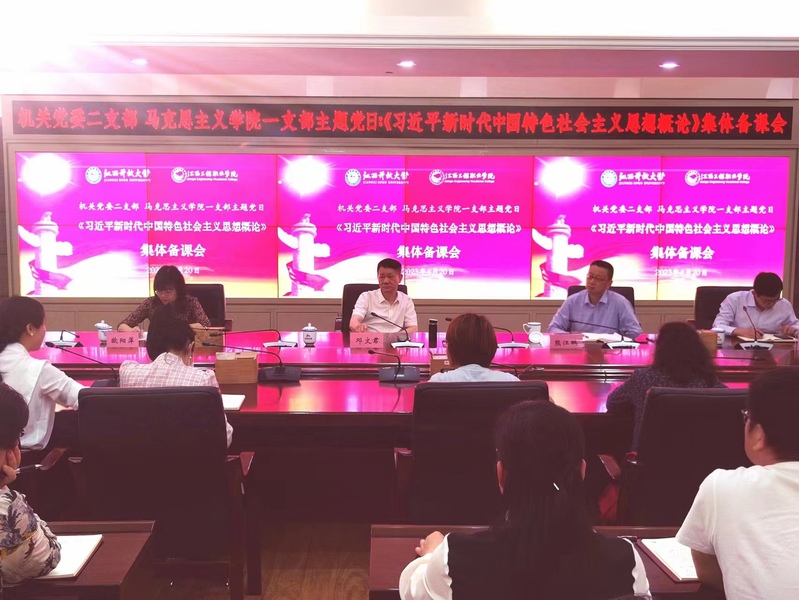 4月19日下午,机关党委二支部和马克思主义学院一支部联合开展了“《习近平新时代中国特色社会主义思想概论》集体备课”主题党日活动。校党委副书记邓文君出席并讲话,校党委委员、组织人事部部长熊江鹏,组织人事部副部长、党校校长、机关党委书记欧阳萍出席,两个支部的全体党员参加。