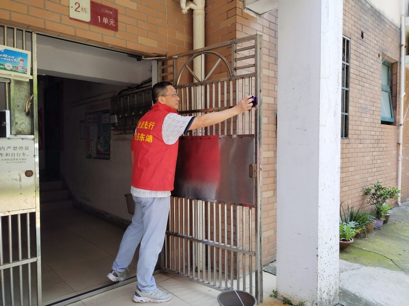 清扫过程中,志愿者们分工协作,发扬不怕脏、不怕苦、不怕累的精神,走到房前屋后,清理生活垃圾、玻璃碎片、清洗楼栋扶手和入户门,做到“发现一处,清理一处”。